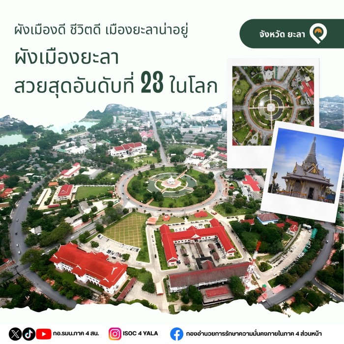 ยะลาวันนี้…กำลังเดินหน้าอย่างมั่นคงด้วยการวางแผนผังเมืองที่คำนึงถึงสิ่งแวดล้อม คุณภาพชีวิต และความปลอดภัยของประชาชนเป็นสำคัญ เช่น