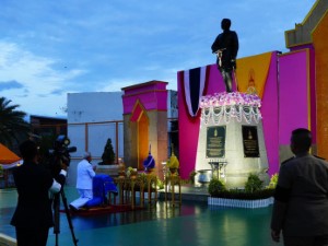 จากนั้น พลเอก สุรยุทธ์ จุลานนท์ ประธานองคมนตรี ผู้แทนพระองค์ เดินทางไปยังพระบรมราชานุสาวรีย์ พระบาทสมเด็จพระจุลจอมเกล้าเจ้าอยู่หัว ณ บริเวณลานศิลปวัฒนธรรม หน้าศาลากลางจังหวัดปัตตานี เพื่อจุดธูปเทียนเครื่องทองน้อยถวายราชสักการะ เบื้องหน้าพระบรมราชานุสาวรีย์ พระบาทสมเด็จพระจุลจอมเกล้าเจ้าอยู่หัว และวางพานพุ่มของพระบาทสมเด็จพระเจ้าอยู่หัว และสมเด็จพระนางเจ้า ฯ พระบรมราชินี