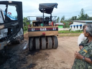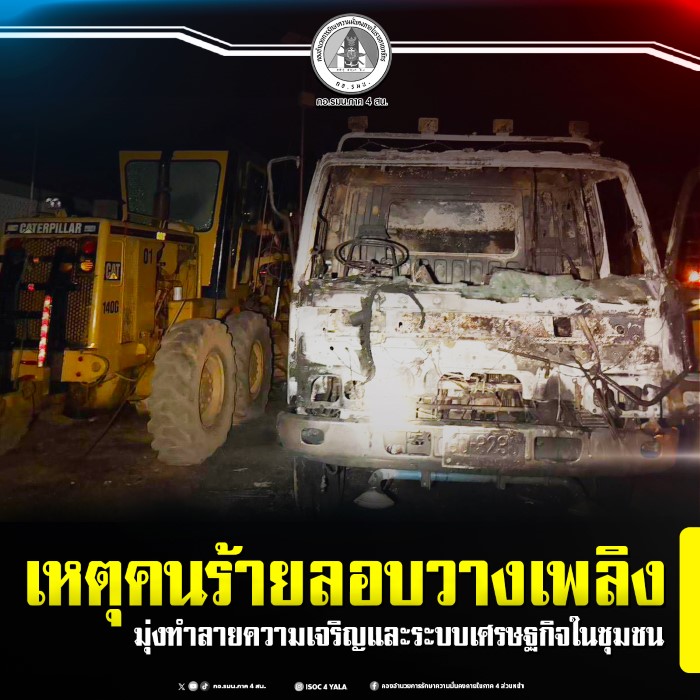 On 29 October 2025 at 06:00 a.m., authorities received a report from the Assistant Village Head of Moo 3, Ban Guerong, Chuab Subdistrict, Cho-airong District, Narathiwat Province, stating that at approximately 02:00 a.m., an unknown number of assailants, dressed in black and with their faces covered, set fire to road construction vehicles belonging to S.O.N. Engineering Company.