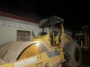 The vehicles were parked along the road in Moo 3, Ban Guerong, Chuab Subdistrict, which is part of a road construction project contracted by the Chuab Subdistrict Administrative Organization (SAO). The project connects Moo 9, Ban Pa Re Rubo, Maruebo-ok Subdistrict, with Moo 3, Ban Guerong, Chuab Subdistrict, and Moo 14, Ban Darul Ihsan, Bukit Subdistrict, covering a total distance of approximately 1.5 kilometers.