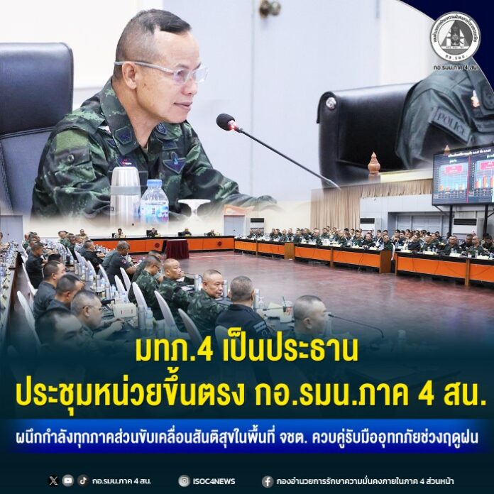 Panglima Tentera Wilayah 4 (Mataphak Thi 4) mempengerusikan mesyuarat agensi di bawah ISOC Wilayah 4 Bahagian Hadapan, bagi menggabungkan semua pihak untuk terus menggerakkan keamanan di wilayah selatan Thailand serta bersiap sedia menghadapi musim banjir.
