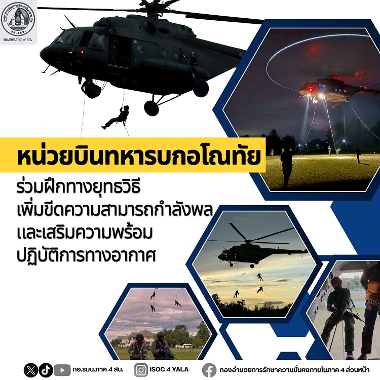 On 30 October 2025, the Anothai Army Aviation Unit, in collaboration with the Mountain Long-Range Reconnaissance Platoon under the Anothai Task Force, conducted a tactical training exercise at the Long-Range Reconnaissance Company Training Field, 15th Infantry Division.