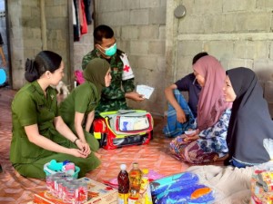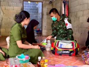 Anggota tentera buat kerjasama dengan pihak tempatan, turun ke kampung lawat keluarga yang susah dan bagi nasihat tentang cara guna ubat dengan betul