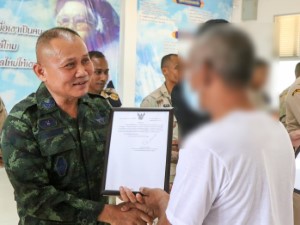 จากนั้น พลตรี วิธเวช วิเศษศรี ผู้อำนวยการศูนย์ป้องกันและแก้ไขปัญหายาเสพติด กองอำนวยการรักษาความมั่นคงภายในภาค 4 ส่วนหน้า ได้เป็นประธานมอบหนังสือรับรองผู้ผ่านการบำบัดฟื้นฟูฯ ตามโครงการบำบัดรักษาและฟื้นฟูสมรรถภาพผู้ป่วยยาเสพติดแบบ Residential Care ประจำปีงบประมาณ 2568 (หลักสูตร 120 วัน) ให้กับผู้สำเร็จการบำบัด จำนวน 30 คน เพื่อเป็นกำลังใจในการกลับคืนสู่สังคมอย่างมั่นคง และสามารถดำรงชีวิตได้อย่างมีคุณค่า รวมไปถึงสามารถเป็นอีกหนึ่งกำลังในการพัฒนาพื้นที่จังหวัดชายแดนภาคใต้สู่ความยั่งยืนต่อไป