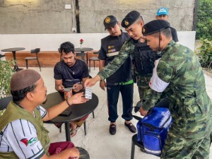นอกจากนี้ หน่วยยังได้จัด “ชุดหมอเดินเท้า” ออกให้บริการตรวจสุขภาพเบื้องต้นและแจกจ่ายยาสามัญประจำบ้านแก่ประชาชน เนื่องจากสภาพอากาศในพื้นที่มีความแปรปรวน โดยดำเนินการในเขต ชุมชนหมู่ที่ 2 บ้านตลาดล่าง ตำบลบันนังสตา ประชาชนในพื้นที่ต่างแสดงความพอใจและขอบคุณเจ้าหน้าที่ที่ลงพื้นที่ดูแลอย่างใกล้ชิด ซึ่งช่วยสร้างความเชื่อมั่นและลดความหวาดระแวงระหว่างภาครัฐกับประชาชน อันนำไปสู่สังคมที่สงบสุขและมั่นคงมากยิ่งขึ้น