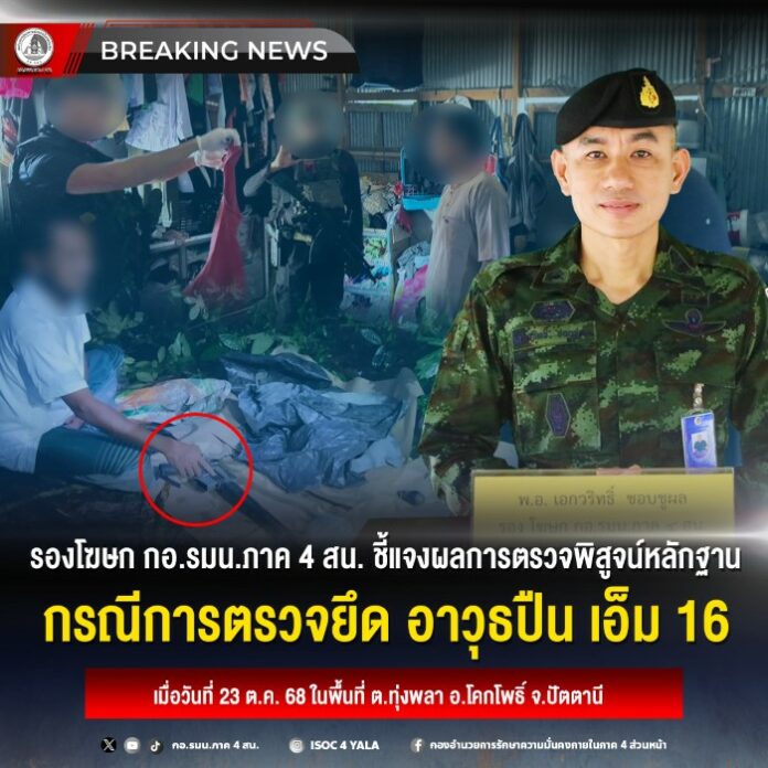 Tentang hasil siasatan dan rampasan senjata M16 pada 23 Oktober 2025 di Tumbol Thung Phla, Daerah Kok Pho, Pattani.