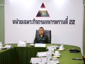วันนี้ (9 พฤศจิกายน 2568) เวลา 11.30 น. พลโท นรธิป โพยนอก แม่ทัพภาคที่ 4/ผู้อำนวยการรักษาความมั่นคงภายในภาค 4 พร้อมด้วย พลตรี ชาคริต อุจะรัตน รองแม่ทัพภาคที่ 4/ รองผู้อำนวยการรักษาความมั่นคงภายในภาค 4 ส่วนหน้า และ พลตรี กฤศ ศรีเดชาสินธุ์ รองผู้อำนวยการรักษาความมั่นคงภายในภาค 4 ส่วนหน้า พร้อมคณะฯ ลงพื้นที่ตรวจเยี่ยมการปฏิบัติงานของหน่วยเฉพาะกิจกรมทหารพรานที่ 22 ตำบลเมาะมาวี อำเภอยะรัง จังหวัดปัตตานี เพื่อรับฟังผลการปฏิบัติงานสำคัญ และมอบนโยบาย 8 กิจสำคัญให้เป็นกรอบแนวทางในการปฏิบัติ พร้อมสร้างขวัญกำลังใจแก่กำลังพลผู้ปฏิบัติหน้าที่ โดยมี พันเอก อุเทน จีนทองหลาง ผู้บังคับหน่วยเฉพาะกิจกรมทหารพรานที่ 22 , ผู้บังคับกองร้อยฯ พร้อมด้วยกำลังพล ร่วมให้การต้อนรับและเข้าร่วมประชุมฯ