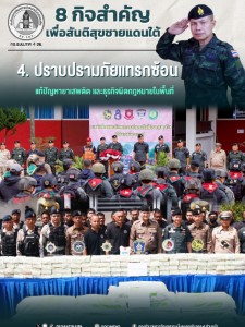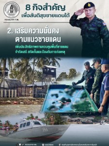- เสริมความมั่นคงตามแนวชายแดน : เพิ่มประสิทธิภาพควบคุมพื้นที่ สกัดกั้นและการป้องกันเหตุ
