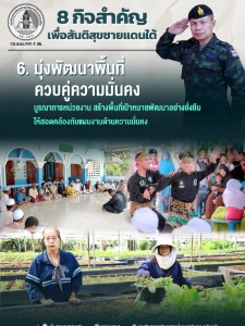 - มุ่งพัฒนาควบคู่ความมั่นคง : บูรณาการหน่วยงาน สร้างพื้นที่เป้าหมายพัฒนาอย่างยั่งยืน ให้สอดคล้องกับแผนงาน ด้านความมั่นคง