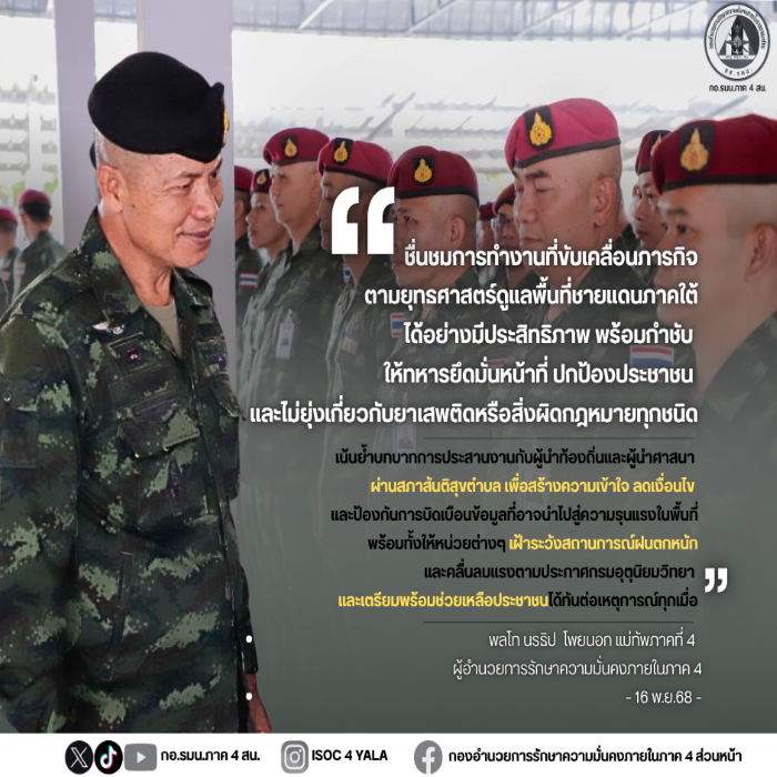พลโท นรธิป โพยนอก แม่ทัพภาคที่ 4 / ผู้อำนวยการรักษาความมั่นคงภายในภาค 4