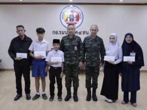 วันนี้ ( 17 พฤศจิกายน 2568 ) เวลา 09.00 น. ที่กองอำนวยการรักษาความมั่นคงภายในภาค 4 ส่วนหน้า ค่ายสิรินธร ตำบลเขาตูม อำเภอยะรัง จังหวัดปัตตานี พลโท นรธิป โพยนอก แม่ทัพภาคที่ 4 / ผู้อำนวยการรักษาความมั่นคงภายในภาค 4 พร้อมผู้บังคับบัญชาของกองอำนวยการรักษาความมั่นคงภายในภาค 4 ส่วนหน้า เป็นประธานมอบทุนการศึกษา เพื่อน้องเยาวชนคนเก่ง เรียนดี แต่ด้อยโอกาสต่อเนื่อง ประจำปี 2568 กว่า 1 แสน 9 หมื่นบาท
