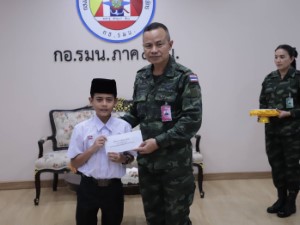 โดย พลโท นรธิป โพยนอก แม่ทัพภาคที่ 4 / ผู้อำนวยการรักษาความมั่นคงภายในภาค 4 กล่าวให้กำลังใจ ขอให้เยาวชนทุกคน อย่าท้อถอย จงขยันหมั่นเพียร ศึกษาเรียนรู้ เพราะ “การศึกษา” อยู่เหนือสิ่งอื่นใดที่นำมาซึ่งความสำเร็จ เปรียบเสมือนต้นไม้ที่งอกงามมั่นคง พร้อมดูแลบ้านเกิดของตนให้มีความเข้มแข็ง เจริญรุ่งเรือง ก่อเกิดสันติสุขอย่างมั่นคงถาวรในพื้นที่ชายแดนใต้