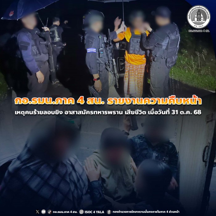 จากกรณีคนร้ายลอบยิง อาสาสมัครทหารพราน มะกอเซ็ง บาโระสะนอ สังกัดหน่วยเฉพาะกิจกรมทหารพรานที่ 41 ขณะลาพัก เสียชีวิต เมื่อวันที่ 31 ตุลาคม 2568 เจ้าหน้าที่ได้รวบรวมพยานหลักฐาน เพื่อติดตามผู้ก่อเหตุ จนสามารถเชื่อมโยงถึงผู้ต้องสงสัย ที่อาจมีส่วนเกี่ยวข้องกับเหตุการณ์ดังกล่าว