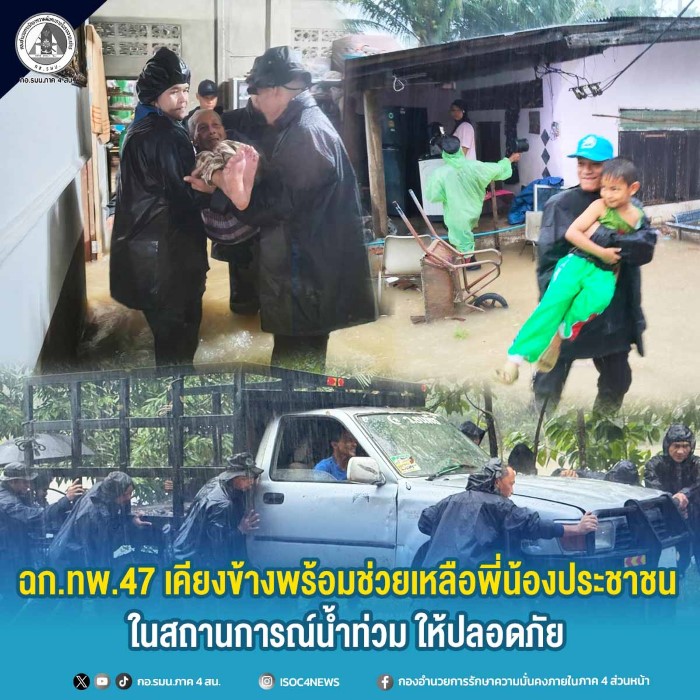 หน่วยเฉพาะกิจกรมทหารพรานที่ 47 จัดกำลังพลให้การช่วยเหลือ ประชาชนย้ายสิ่งของเนื่องจากสถานการณ์น้ำท่วมในพื้นที่ เพิ่มสูงขึ้นอย่างรวดเร็ว พร้อมจัดตั้งศูนย์อพยพชั่วคราว เพื่อเป็นการบรรเทาความเดือดร้อนเบื้องต้น และรับมือกับสถานการณ์น้ำท่วมฉับพลัน ในพื้นที่ อำเภอยะหา, อำเภอกาบัง และ อำเภอกรงปินัง จังหวัดยะลา อีกทั้งเพื่อเป็นการสร้างความอุ่นใจให้แก่พี่น้องประชาชนว่าทหารจะเคียงข้างประชาชนทุกโอกาส