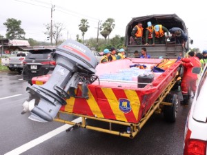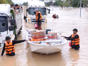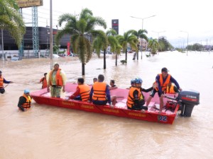 ในส่วนของสถานการณ์น้ำในพื้นที่ ขณะนี้ปริมาณมวลน้ำยังทรงตัว ขณะที่ฝนยังคงตกต่อเนื่อง ประกอบกับมีน้ำทะเลหนุน ส่งผลให้การระบายน้ำเป็นไปอย่างล่าช้า และหลายพื้นที่ของอำเภอหาดใหญ่ยังอยู่ในภาวะวิกฤติ เจ้าหน้าที่ได้วางแผนและเร่งปฏิบัติการช่วยเหลือพี่น้องประชาชนอย่างต่อเนื่อง โดยล่าสุดได้รับการสนับสนุนกำลังพลและยุทโธปกรณ์จากกองทัพเรือมาร่วมปฏิบัติภารกิจ