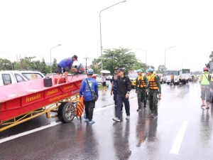 วันที่ 25 พฤศจิกายน 2568 เวลา 12.00 น. พันเอก เอกวริทธิ์ ชอบชูผล รองโฆษกกองอำนวยการรักษาความมั่นคงภายในภาค 4 ส่วนหน้า นำกำลังพลร่วมกับหน่วยงานที่เกี่ยวข้อง ลงพื้นที่อำเภอหาดใหญ่ พร้อมนำรถบรรทุก FTS ลำเลียงเรือของมูลนิธิสว่างราชบุรี เพื่อเข้าช่วยอพยพและให้การช่วยเหลือประชาชนที่ได้รับผลกระทบจากสถานการณ์น้ำท่วมในโซนคลองแหและพื้นที่ใกล้เคียง ทั้งยังได้สนับสนุนการลำเลียงเสบียง อาหาร และน้ำดื่ม ไปยังครัวเรือนที่ถูกตัดขาดจากเส้นทางสัญจร เพื่อให้ประชาชนได้รับการดูแลอย่างทั่วถึงและทันท่วงที