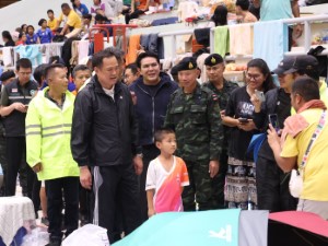 นายกรัฐมนตรี ได้ให้สัมภาษณ์ว่า ขณะนี้ได้สั่งการให้ผู้บัญชาการทหารสูงสุด , ปลัดกระทรวงมหาดไทย, ผู้ว่าราชการจังหวัดสงขลา, และแม่ทัพภาคที่ 4 ที่อยู่ในพื้นที่รวมพลังกันเพื่อเร่งดำเนินการเข้าช่วยเหลือผู้ประสบภัยให้เร็วที่สุดไม่ว่าจะเป็นการลำเลียงอาหารและน้ำดื่ม โดยจะพยายามส่งให้ถึงมือกับทุกคนให้ได้ ในขณะนี้ได้รวบรวมทรัพยากรทั้งหมด ทั้งเครื่องมือทางทหาร, กำลังพล, พร้อมยุทโธปกรณ์ต่างๆ อย่างพร้อมเพรียง อีกทั้งได้ ยังได้แต่งตั้งให้ผู้บัญชาการทหารสูงสุดเป็นผู้บัญชาการสถานการณ์ในพื้นที่จังหวัดสงขลา เพื่อให้การสั่งการและดำเนินการเป็นไปอย่างมีประสิทธิภาพ อีกทั้งยังระบุถึงความจำเป็นที่จะต้อง เพิ่มเครื่องจักรที่จะสามารถต้านแรงน้ำได้ เพื่อเข้าช่วยเหลือผู้ประสบภัยที่ยังติดค้างอยู่