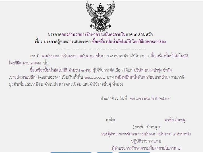 จัดซื้อ จัดจ้างประกาศผู้ชนะการเสนอราคา ประกาศผู้ชนะการเสนอราคา ซื้อเครื่องปั๊มน้ำอัติโนมัติ โดยวิธีเฉพาะเจาะจง ( ๑๑,๖๐๐.๐๐ บาท ) February 2, 2021 904 Share Facebook Twitter Google+ Telegram LINE กอ.รมน.ภาค ๔ สน.