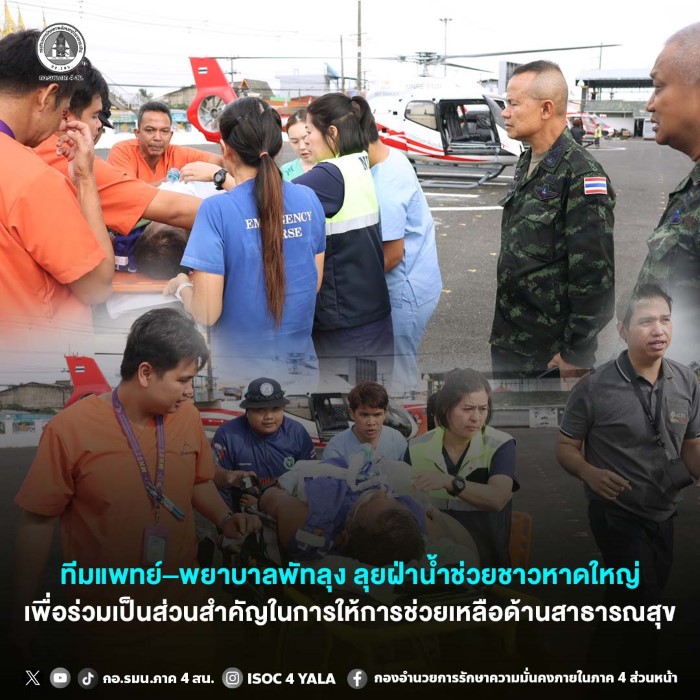 วันนี้ 27 พฤศจิกายน 2568 ที่ ศูนย์บรรเทาสาธารณภัยกองทัพภาคที่ 4 ส่วนหน้า ค่ายเสนาณรงค์ ทีมแพทย์ – พยาบาล จากหลายพื้นที่ หลั่งไหลลงมาในพื้นที่ของอำเภอหาดใหญ่ จังหวัดสงขลา เพื่อร่วมเป็นส่วนสำคัญในการให้การช่วยเหลือด้านสาธารณสุข ซึ่งจำเป็นต่อการดูแลอย่างมากในช่วงที่พี่น้องประชาชนได้ประสบอุทกภัย