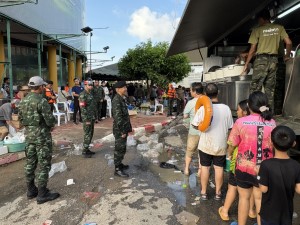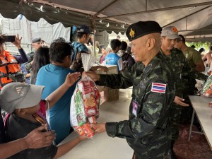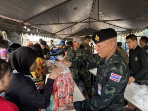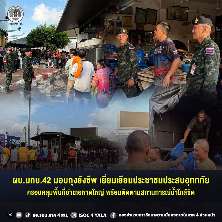 วันที่ 27 พฤศจิกายน 2568 เวลา 16.00 น. พลตรี ภูมเดชา พ่วงเจริญ ผู้บัญชาการมณฑลทหารบกที่ 42 ลงพื้นที่บริเวณลานน้ำพุ วงเวียนน้ำพุ อำเภอหาดใหญ่ จังหวัดสงขลา เพื่อมอบถุงยังชีพประกอบด้วยอาหาร น้ำดื่ม ข้าวสาร ยา และสิ่งของจำเป็น ให้แก่ประชาชนที่ได้รับผลกระทบจากสถานการณ์น้ำท่วมที่ครอบคลุมพื้นที่อำเภอหาดใหญ่ โดยมีเจ้าหน้าที่ทหารบูรณาการร่วมกับทุกภาคส่วน ลำเลียงสิ่งของช่วยเหลืออย่างต่อเนื่อง