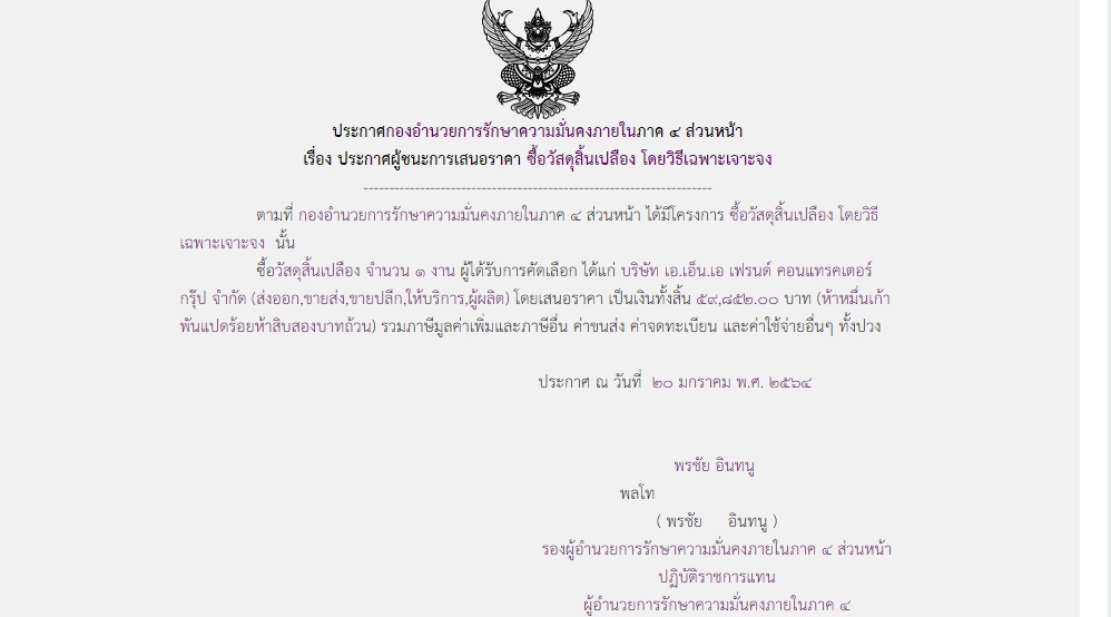 ประกาศผู้ชนะการเสนอราคา ซื้อวัสดุสิ้นเปลือง โดยวิธีเฉพาะเจาะจง ( ๕๙,๘๕๒.๐๐ บาท )