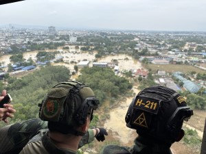 วันนี้ (28 พฤศจิกายน 2568) ศูนย์บรรเทาสาธารณภัย กองทัพภาคที่ 4 ส่วนหน้า (มณฑลทหารบกที่ 42) ค่ายเสนาณรงค์ อำเภอหาดใหญ่ จังหวัดสงขลา ยังคงปฏิบัติการช่วยเหลือผู้ประสบภัยน้ำท่วมอย่างต่อเนื่อง ได้ยกระดับปฏิบัติการกู้ภัยฉุกเฉิน โดยใช้ เฮลิคอปเตอร์ อากาศยาน 212 เป็นหัวใจสำคัญในการช่วยเหลือผู้ป่วยวิกฤต ที่ติดอยู่ในพื้นที่น้ำท่วม โดยเฉพาะในเขต 8 อำเภอหาดใหญ่