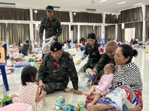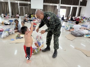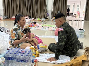 ด้าน นางสาวนัฐพร เทพรักษ์ หนึ่งในผู้ปกครองของเด็ก ที่พักอยู่ในศูนย์พักพิง เปิดเผยทั้งน้ำตาว่า ตนรู้สึกขอบคุณทหารและศูนย์พักพิงแห่งนี้อย่างที่สุด เพราะสามารถดูแลพี่น้องประชาชนได้เป็นอย่างดี ไม่ว่าจะเป็น อาหาร น้ำดื่ม ผ้าอ้อมเด็ก นมสำหรับเด็ก รวมถึงของใช้จำเป็นต่าง ๆ อีกทั้งยังมีทีมแพทย์และพยาบาล คอยดูแลอย่างใกล้ชิด เนื่องจากหลานสาวของตน เพิ่งผ่าตัดหัวใจมา และที่สำคัญหากไม่ได้มาอยู่ที่นี่ ตนไม่รู้ว่าจะทำอย่างไร เพราะบ้านเรือนได้รับผลกระทบจากอุทกภัยอย่างหนัก ขณะเกิดเหตุเธอต้องอุ้มหลานฝ่ากระแสน้ำออกมา ก่อนที่เจ้าหน้าที่กู้ภัยจะเข้ามาช่วยเหลือและนำส่งมายังศูนย์พักพิงแห่งนี้ ท้ายที่สุด ต้องขอบคุณทหารและเจ้าหน้าที่กู้ภัยทุกนาย ที่มีส่วนช่วยชีวิตของตนและหลานสาวไว้ได้อย่างปลอดภัย