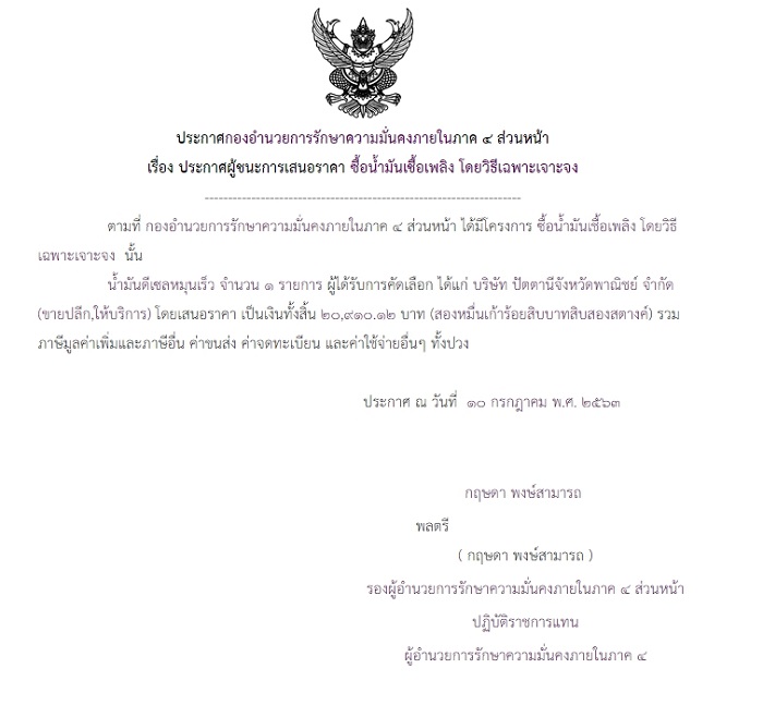 ประกาศผู้ชนะการเสนอราคา ซื้อน้ำมันเชื้อเพลิง โดยวิธีเฉพาะเจาะจง(๒)