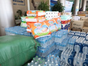 ภารกิจแรก รองนายกรัฐมนตรีได้นำผ้าไตรจีวรจำนวน 100 ไตร พร้อมสมณบริขาร ยารักษาโรค และของจำเป็น ซึ่งเจ้าพระคุณ สมเด็จพระอริยวงศาคตญาณ สมเด็จพระสังฆราช สกลมหาสังฆปริณายก โปรดประทาน มอบถวายพระภิกษุและสามเณรที่ได้รับผลกระทบจากน้ำท่วม ณ วัดชัยชนะสงคราม อำเภอหาดใหญ่ โดยมีพระเทพวชิรสุตาภรณ์ เจ้าคณะจังหวัดสงขลา เป็นประธานฝ่ายสงฆ์ ขณะที่ปลัดสำนักนายกรัฐมนตรีได้ถวายผ้าไตรสมทบอีก 500 ไตร เพื่อกระจายไปยังวัดต่าง ๆ ที่ประสบภัย