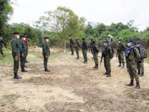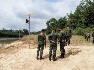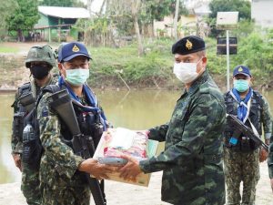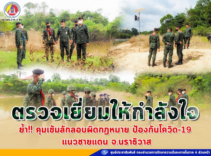 จากนั้น พลตรี ไพศาล หนูสังข์ เดินทางตรวจเยี่ยมให้กำลังใจ ชป.จรยุทธ์ ของชุดควบคุมป้องกันชายแดน (ชค.ปชด) และ ชุดปฏิบัติการอาสารักษาดินแดน ( ชป.อส.) ในการเฝ้าระวังและสกัดกั้นการลักลอบเข้าเมืองโดยผิดกฎหมายตามแนวชายแดนไทย-มาเลเซีย เพื่อป้องกันการแพร่ระบาดของเชื้อไวรัสโคโรน่า COVID-19 ณ พื้นที่แนวชายแดนริมแม่น้ำโก-ลก บ้านน้ำตก หมู่ที่ 5 ตำบลปาเสมัส อำเภอสุไหงโก-ลก จังหวัดนราธิวาส พร้อมทั้งมอบนโยบายในการปฏิบัติงาน การใส่ชุดPPE เพื่อเป็นการเพิ่มมาตรการป้องกันโรคให้แก่กำลังพลที่ปฏิบัติงานในพื้นที่ และมอบสิ่งของบริโภคเพื่อเป็นขวัญกำลังใจแก่ ชป.จรยุทธ์ และ ชป.อส. ที่ปฏิบัติงานในพื้นที่รับผิดชอบ อีกทั้งลงพื้นที่พบปะพูดคุยกับผู้นำชุมชนและประชาชนในพื้นที่ เพื่อขอความร่วมมือในการช่วยกันสอดส่องการลักลอบข้ามแดนผิดกฎหมายและรับทราบปัญหาข้อมูลข่าวสารในพื้นที่เพื่อนำมาวิเคราะห์และหาแนวทางในการแก้ไขปัญหาต่อไป