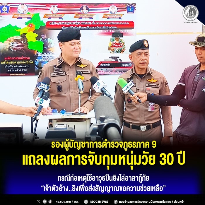 วันนี้ (1 ธันวาคม 2568) เวลา 12.00 น. ณ สถานีตำรวจภูธรคอหงส์ อ.หาดใหญ่ จ.สงขลา พลตำรวจตรี วรา เวชชาภินันท์ พร้อมด้วย พลตำรวจตรี อาชาน จันทร์ศิริ รองผู้บัญชาการตำรวจภูธรภาค 9 ได้ร่วมกันแถลงผลการจับกุมผู้ก่อเหตุใช้อาวุธปืนยิงขณะที่เจ้าหน้าที่อาสาสมัครกู้ภัยกำลังขับเจ็ตสกีเข้าช่วยเหลือผู้ประสบภัยน้ำท่วม บริเวณโรงเรียนบ้านเกาะหมี ต.คลองแห อ.หาดใหญ่ เหตุเกิดเมื่อวันที่ 25 พฤศจิกายน 2568
