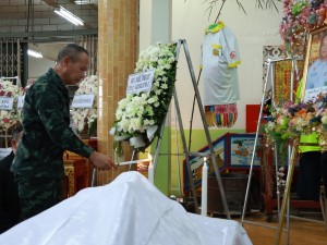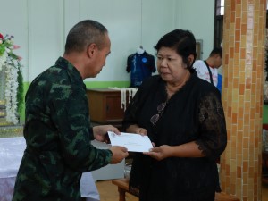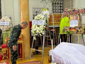 โอกาสนี้ รองแม่ทัพภาคที่ 4 / รองผู้อำนวยการรักษาความมั่นคงภายในภาค 4 ส่วนหน้า ได้วางพวงหรีดเคารพศพในนามของ พลโท นรธิป โพยนอก แม่ทัพภาคที่ 4 / ผู้อำนวยการรักษาความมั่นคงภายในภาค 4 พร้อมกันนี้ยังได้มอบใบประกาศนียบัตร และมอบเงินช่วยเหลือเบื้องต้น แก่ทายาทครอบครัวผู้วายชนม์ เพื่อเป็นการประกาศเกียรติคุณ เชิดชูเกียรติ ในการประกอบคุณงามความดีของผู้วายชนม์ ที่สมัครใจช่วยเหลือผู้อื่น ยอมเสียสละเวลา แรงกาย แรงใจ และสติปัญญาในการทำงานที่เป็นสาธารณประโยชน์ โดยไม่หวังผลตอบแทนใดๆ