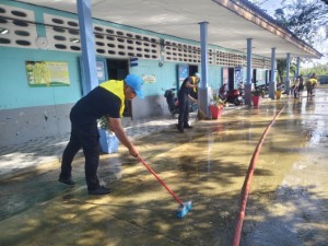 เจ้าหน้าที่ทุกภาคส่วนร่วมกันทำกิจกรรม Big Cleaning ทั้งภายในและโดยรอบโรงเรียน เพื่อให้สถานศึกษากลับมาพร้อมเปิดการเรียนการสอนได้ตามปกติ โดยภารกิจครั้งนี้ยังสอดคล้องกับการขับเคลื่อนโครงการ ฮูกุมปากัต (ธรรมนูญหมู่บ้าน 9 ดี) ในประเด็น ดีที่ 5 : สิ่งแวดล้อมสมบูรณ์ , ดีที่ 6 : สังคมอบอุ่น ภาครัฐ–ชุมชน–จิตอาสาร่วมฟื้นฟูหลังอุทกภัย จากการปฏิบัติภารกิจสำเร็จด้วยดี สามารถฟื้นฟูความสะอาดและความปลอดภัยของโรงเรียน พร้อมสร้างความเชื่อมั่นให้ครู นักเรียน และชุมชนว่าเจ้าหน้าที่ทหารพรานยังคงยืนเคียงข้างประชาชน พร้อมช่วยเหลือในทุกสถานการณ์ฉุกเฉินและภาวะวิกฤต