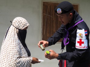 ในวันเดียวกันเวลา 09.45 น. หน่วยเฉพาะกิจกรมทหารพรานที่ 44 ได้ลงพื้นที่ชุมชนหมู่ 4 บ้านป่าทุ่ง ตำบลบางเก่า อำเภอสายบุรี จังหวัดปัตตานี โดยมีชุดจิตอาสา ชุดกิจการพลเรือน และชุดหมอเดินเท้า ร่วมปฏิบัติการเคียงข้างผู้นำชุมชน เยาวชน และส่วนราชการในพื้นที่ เพื่อดูแลประชาชนที่ยังได้รับผลกระทบจากอุทกภัย นอกจากนี้ยังได้มอบถุงยังชีพให้กับครัวเรือนที่ได้รับความเดือดร้อน และมอบเวชภัณฑ์พื้นฐานสำหรับดูแลสุขภาพในครัวเรือน พร้อมให้คำปรึกษาแนะนำด้านสุขอนามัยหลังน้ำลด ซึ่งเป็นช่วงที่ประชาชนต้องระวังโรคผิวหนัง การติดเชื้อ และสุขภาพจิตจากความเครียดหลังภัยพิบัติ
