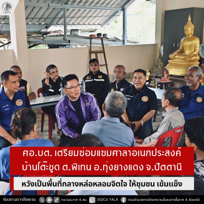 (7 ธันวาคม 2568) นายปิยะศิริ วัฒนวรางกูร เลขาธิการศูนย์อำนวยการบริหารจังหวัดชายแดนภาคใต้ (ศอ.บต.)พร้อมด้วยนายอภิรัตน์ วัฒนาพุทธากร ผู้อำนวยการกลุ่มงานสังคมจิตวิทยาเพื่อความมั่นคง กองส่งเสริมและสนับสนุนงานพัฒนาเพื่อความมั่นคง (กสม.) ศอ.บต. ลงพื้นที่ตำบลพิเทน อำเภอทุ่งยางแดง จังหวัดปัตตานี เพื่อพบปะเยี่ยมเยียนประชาชนกลุ่มไทยพุทธบ้านโต๊ะชูด ตำบลพิเทน อำเภอทุ่งยางแดง จังหวัดปัตตานี ที่มีความเดือดร้อนในเรื่องของศาลาอเนกประสงค์ในการประกอบพิธีกรรมทางศาสนา และพื้นที่กลางในชุมชนมีความชำรุดเสียหาย พร้อมนำสิ่งของเครื่องอุปโภคบริโภคมามอบเป็นขวัญกำลังใจ