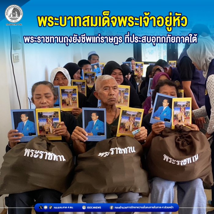 วันที่ 9 ธันวาคม 2568 เวลา 09.00 น. หน่วยเฉพาะกิจกรมทหารพรานที่ 41 โดย ผู้บังคับกองร้อยทหารพรานที่ 4102 พร้อมด้วยกำลังพลชุดปฏิบัติการกิจการพลเรือน กองร้อยทหารพรานที่ 4102 ร่วมกับส่วนราชการ, ผู้นำชุมชน และ ชุดคุ้มครองตำบลตะโล๊ะหะลอ อัญเชิญถุงยังชีพพระราชทาน มอบให้กับประชาชนกลุ่มเปราะบาง (ผู้ป่วยติดเตียง และผู้สูงอายุ) ที่ได้รับผลกระทบจากอุทกภัยในห้วงที่ผ่านมา เพื่อเป็นขวัญกำลังใจและบรรเทาความเดือดร้อนแก่ประชาชนในเบื้องต้น ณ ที่ทำการกำนัน ตำบลตะโล๊ะหะลอ อำเภอรามัน จังหวัดยะลา
