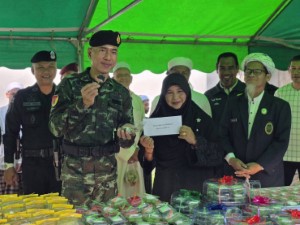 ต่อมา ผู้บังคับหน่วยเฉพาะกิจนราธิวาส ได้เดินเท้าเข้าพบปะประชาชนกลุ่มเปราะบาง(ผู้พิการ) ในพื้นที่ ตำบลโต๊ะเด็ง ให้กำลังใจ พร้อมมอบถุงยังชีพและเงินบำรุงขวัญ รวมทั้งเข้าพบปะเยี่ยมเยียนคณะกรรมการมัสยิด, กำลังพลหน่วยเฉพาะกิจกรมทหารพรานที่ 48 ที่ได้รับผลกระทบจากน้ำท่วม ตลอดจนเจ้าหน้าที่ชุดคุ้มครองตำบลโต๊ะเด็ง เพื่อเป็นขวัญและกำลังใจในการปฏิบัติหน้าที่ต่อไป