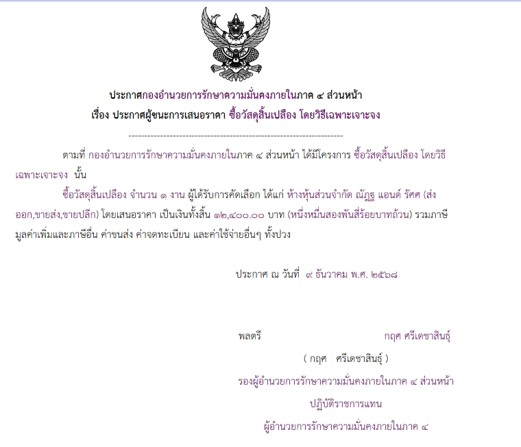 จัดซื้อ จัดจ้างประกาศผู้ชนะการเสนอราคา ประกาศผู้ชนะการเสนอราคา ซื้อวัสดุสิ้นเปลือง โดยวิธีเฉพาะเจาะจง December 13, 2025 8 Share Facebook Twitter Google+ Telegram LINE