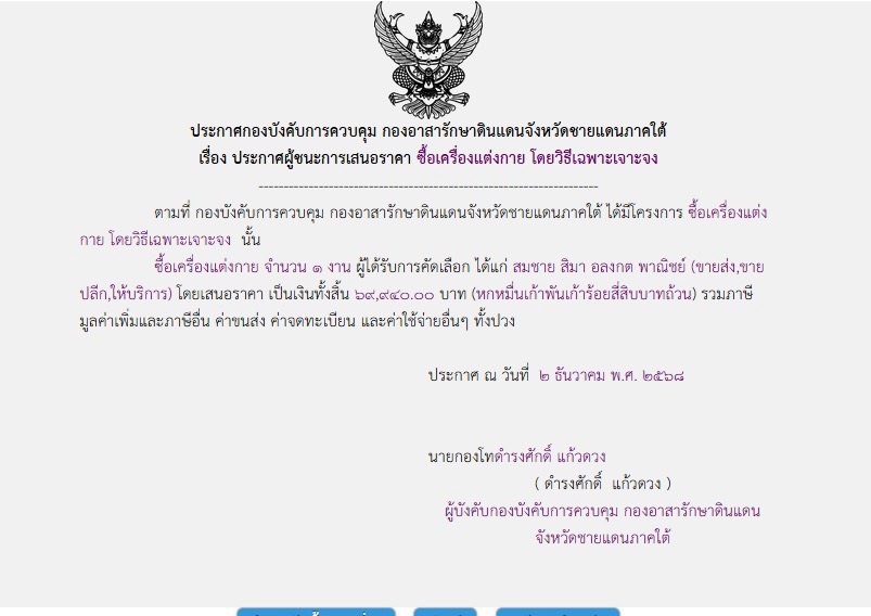จัดซื้อ จัดจ้างประกาศผู้ชนะการเสนอราคา ประกาศผู้ขนะการเสนอราคา ซื้อเครื่องแต่งกาย โดยวิธีเฉพาะเจาะจง December 15, 2025 10 Share Facebook Twitter Google+ Telegram LINE