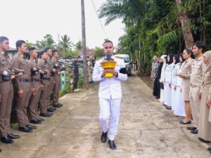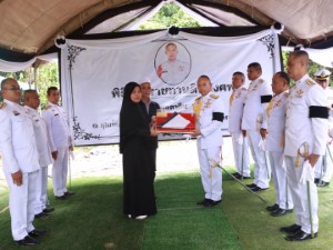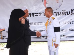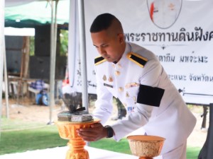 ขณะที่ดินพระราชทานมาถึง ญาติและข้าราชการตั้งแถวรอรับอย่างสมเกียรติ โดยเจ้าหน้าที่ได้อัญเชิญดินพระราชทาน วางบนหลุมฝังศพผู้วายชนม์ ผู้นำศาสนาอ่านอัลกุรอ่าน และสวดดุอาอ์ พร้อมยืนสงบนิ่งเพื่อไว้อาลัย กองทหารเกียรติยศ พลแตรเดี่ยว เป่าแตรเคารพ 1 จบ เป็นสัญญานแสดงวันอันเหน็ดเหนื่อยได้ผ่านพ้นไปแล้ว เพื่อเชิดชูเกียรติถึงความกล้าหาญเสียสละของทหารผู้กล้าที่ปฎิบัติหน้าที่ได้อย่างสมเกียรติจนวาระสุดท้าย ซึ่งการได้รับพระราชทานดินฝังศพในครั้งนี้ สร้างความปลาบปลื้ม และซาบซึ้งในพระมหากรุณาธิคุณแก่ครอบครัวทหารกล้า ผู้วายชนม์เป็นล้นพ้น ที่พระบาทสมเด็พระเจ้าอยู่หัว ทรงมีต่อครอบครัว