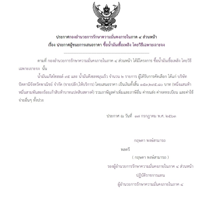 ประกาศผู้ชนะการเสนอราคา ซื้อน้ำมันเชื้อเพลิง โดยวิธีเฉพาะเจาะจง(๑๓)