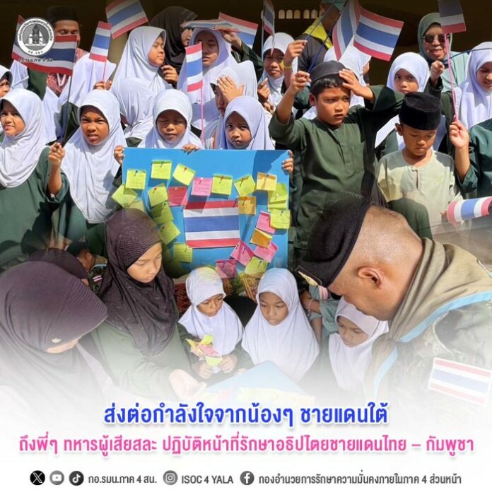 กิจกรรมดังกล่าวจัดขึ้นเพื่อส่งพลังใจ ความห่วงใย และความปรารถนาดีจากเด็กและเยาวชนในพื้นที่ชายแดนใต้ ไปยังพี่น้องทหารที่กำลังปฏิบัติภารกิจพิทักษ์รักษาอธิปไตยของชาติ ณ พื้นที่ชายแดนไทย – กัมพูชา พร้อมทั้งร่วมกันกล่าวดูอาร์ขอพรต่ออัลลอฮ์ (ซ.บ.) ขอให้ทุกนายประสบความปลอดภัย มีพลังใจและความเข้มแข็งในการปฏิบัติหน้าที่