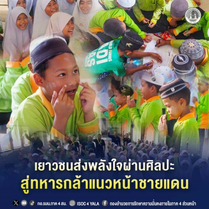 โอกาสนี้ ได้ร่วมกิจกรรมเสาธง 5 นาที และจัดกิจกรรมสร้างสรรค์ เปิดพื้นที่การเรียนรู้ให้เยาวชนได้แสดงออกผ่านการระบายสี เพื่อส่งกำลังใจถึงทหารที่ปฏิบัติหน้าที่พิทักษ์ปกป้องอธิปไตยของชาติในพื้นที่ชายแดนไทย–กัมพูชา เสริมสร้างความตระหนักรู้ถึงคุณค่าของความเสียสละ ความเข้มแข็ง และบทบาทสำคัญของเจ้าหน้าที่ผู้ปฏิบัติงานในพื้นที่ห่างไกล