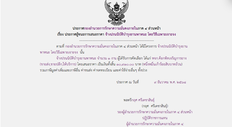 จัดซื้อ จัดจ้างประกาศผู้ชนะการเสนอราคา ประกาศผู้ชนะการเสนอราคา จ้างปรนนิบัติบำรุงยานพาหนะ โดยวิธีเฉพาะเจาะจง December 22, 2025 5 Share Facebook Twitter Google+ Telegram LINE