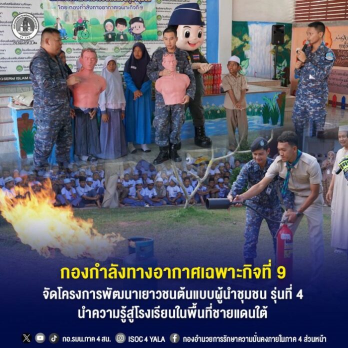 วันที่ 24 ธันวาคม 2568 นาวาอากาศเอก สุทธิชัย ศรีทองอุทัย รองเสนาธิการกองกำลังทางอากาศเฉพาะกิจที่ 9 พร้อมด้วยข้าราชการกองกำลังทางอากาศเฉพาะกิจที่ 9 ดำเนินการจัดโครงการพัฒนาเยาวชนต้นแบบผู้นำชุมชน รุ่นที่ 4 นำความรู้ ความสุขสู่ โรงเรียนส่งเสริมอิสลามศึกษา ตำบลท่ากำชำ อำเภอหนองจิก จังหวัดปัตตานี โดยมีคุณครู และเด็กนักเรียน และบุคลากรทางการศึกษาร่วมกิจกรรม