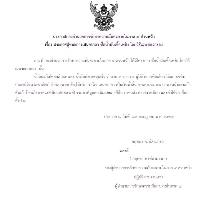 ประกาศผู้ชนะการเสนอราคา ซื้อน้ำมันเชื้อเพลิง โดยวิธีเฉพาะเจาะจง(๑๕)