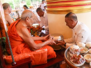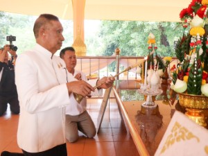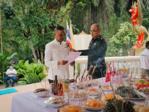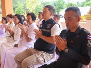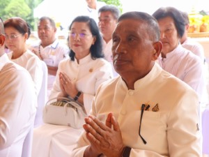 ที่ปรึกษากองอำนวยการรักษาความมั่นคงภายในภาค 4 /นายกสมาคมเพื่อความมั่นคงพระพุทธศาสนาจังหวัดชายแดนภาคใต้ /เลขาธิการศูนย์พัฒนาและส่งเสริมพระพุทธศาสนาจังหวัดชายแดนภาคใต้ เป็นประธานฝ่ายฆราวาส พร้อมด้วยข้าราชการ ทหาร ตำรวจ และประชาชนในพื้นที่เข้าร่วมพิธีอย่างพร้อมเพรียง