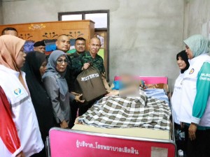 จากนั้น คณะฯ ได้เดินทางไปเยี่ยมเยียนผู้ป่วยติดเตียงและผู้พิการทางการเคลื่อนไหว ณ บ้านเลขที่ 39/1 หมู่ที่ 5 บ้านพงกูแว ตำบลยะหา อำเภอยะหา จังหวัดยะลา โดยได้พูดคุยสอบถามอาการ มอบเครื่องอุปโภคบริโภคเพื่อบรรเทาความเดือดร้อน และให้กำลังใจแก่ครอบครัว ซึ่งสะท้อนถึงความห่วงใยของกองทัพที่มีต่อพี่น้องประชาชนกลุ่มเปราะบางในพื้นที่อย่างต่อเนื่อง