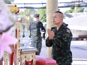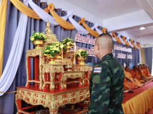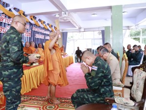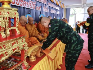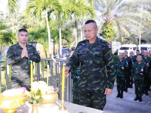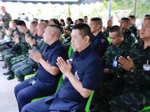 ส่วนพิธีทางศาสนาพุทธ จัดขึ้น ณ เขาพระศรีศากยมุนีพุทธโคดม เพื่อเสริมความเป็นสิริมงคล โดย พลโท นรธิป โพยนอก ได้นำคณะผู้บังคับบัญชาและกำลังพลร่วมสักการะสิ่งศักดิ์สิทธิ์ประจำหน่วย ได้แก่ พระศรีศากยมุนีพุทธโคดม, องค์จตุคามรามเทพ และรอยพระพุทธบาท เพื่ออัญเชิญบารมีมาคุ้มครองป้องภัยแก่เหล่ากำลังพล จากนั้นได้นิมนต์พระสงฆ์ทรงสมณศักดิ์ร่วมเจริญพระพุทธมนต์ เมื่อเสร็จสิ้นพิธีการ จึงได้ร่วมกันถวายภัตตาหารเพลแด่พระสงฆ์ เพื่ออุทิศส่วนบุญส่วนกุศลแก่กำลังพลผู้เสียสละและวีรชนที่ล่วงลับ ตลอดจนสร้างขวัญกำลังใจให้แก่กำลังพลทุกนายในการมุ่งมั่นปฏิบัติหน้าที่ดูแลความปลอดภัยให้กับประชาชนสืบไป
