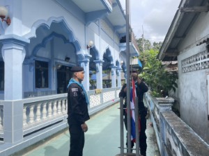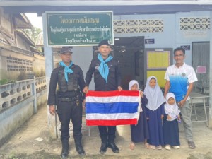 โอกาสนี้ ทางหน่วยฯ ได้มอบธงชาติไทยผืนใหม่เพื่อทดแทนผืนเดิมที่ชำรุด พร้อมร่วมกันเชิญธงขึ้นสู่ยอดเสา แสดงออกถึงพลังความร่วมมือระหว่างเจ้าหน้าที่รัฐ สถานศึกษา และชุมชน ในการดูแลบุตรหลานให้ห่างไกลจากยาเสพติดและภัยคุกคามต่างๆ พร้อมผลักดันให้สถานศึกษาเป็นพื้นที่ปลอดภัยและจุดเริ่มต้นของการพัฒนาคุณภาพชีวิตที่ยั่งยืนในพื้นที่จังหวัดชายแดนภาคใต้